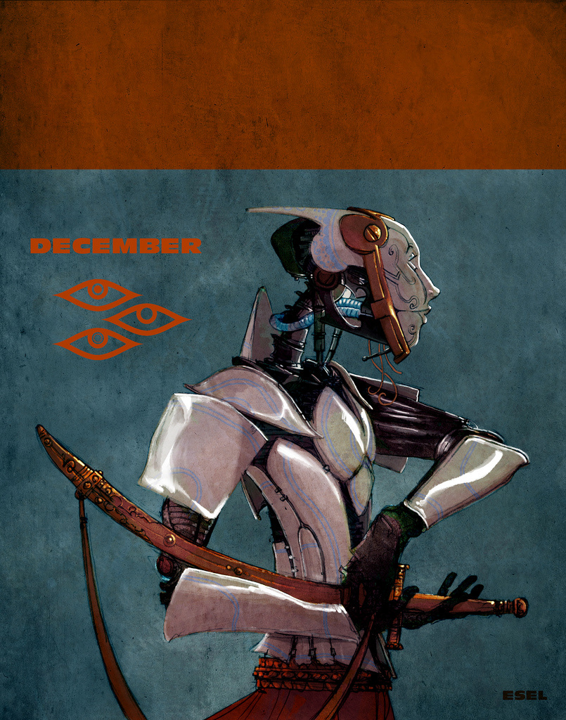 Three from a small series of images with robot and calendar imagery.